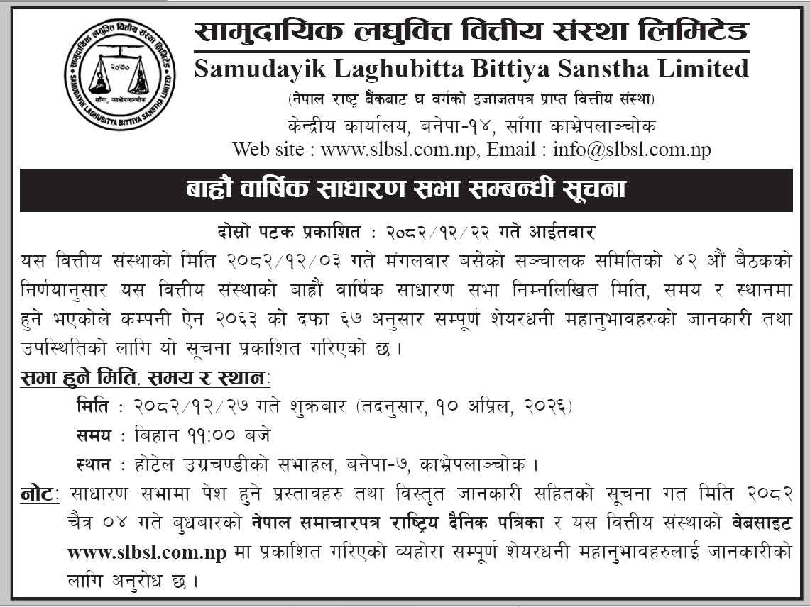 - Samudayik 12th AGM Notice