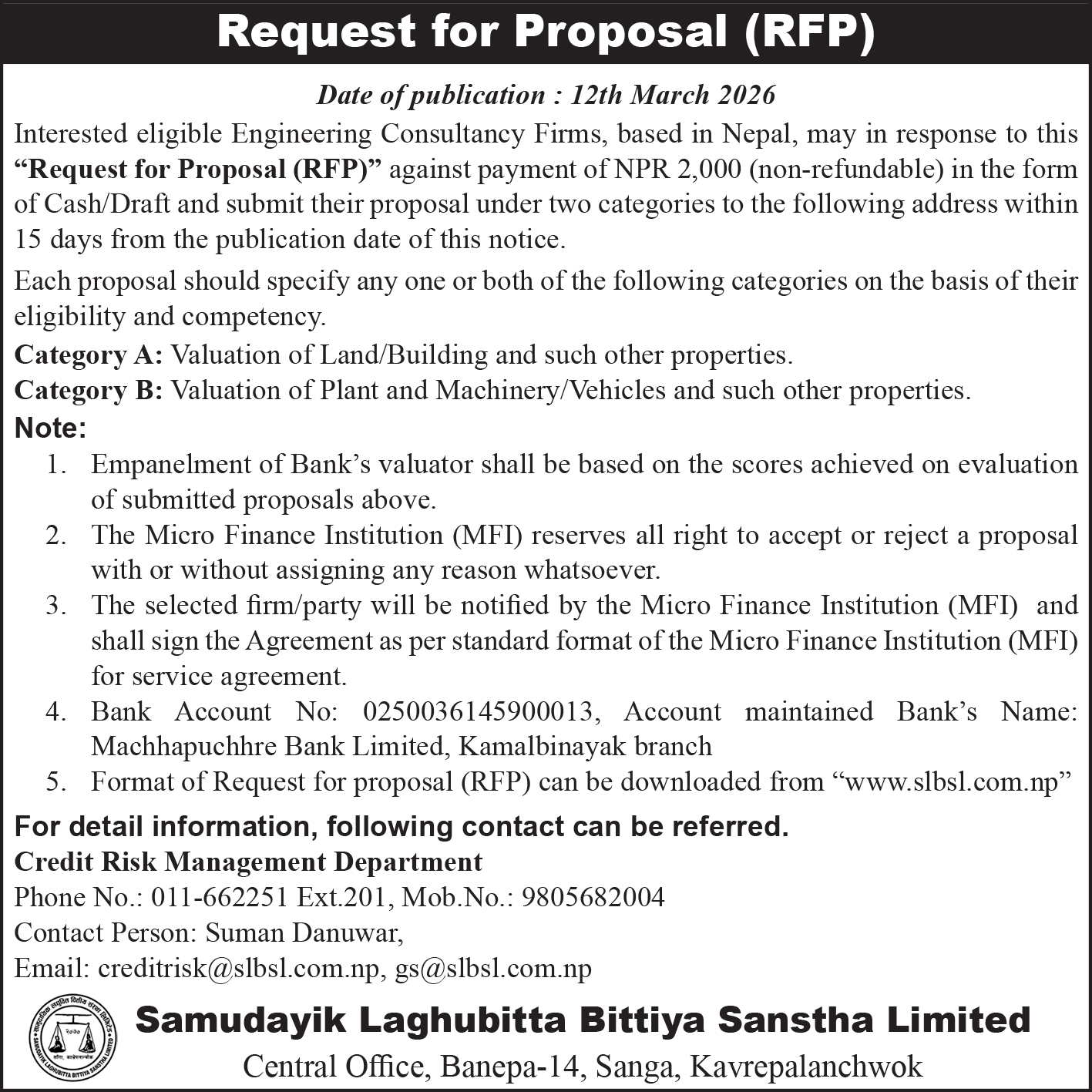 One of the Micro finance Institutions registered under the company Act, 2063 on 2070-03-28 as public limited Company having Registration number 114029/069/070 in Company Registrar Office, Kathmandu, Nepal and licensed by Nepal Rastra Bank (Central Bank of Nepal) as a 'D' class financial institution on 2070-12-30 with Reg. No. 36/070/071 to operate under bank and financial institution act 2073. We locate at Sanga, Banepa Municipality,ward no. 14,Kavrepalanchowk district,Province No. 3 of Nepal.